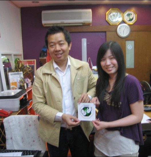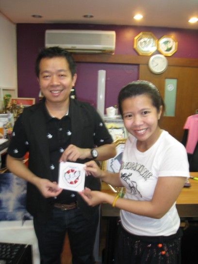 อ.หนึ่ง มอบสติกเกอร์นำโชค ชุดการงาน/ค้าขาย เป็นหนึ่งในผลิตภัณฑ์ของธนาคารลายมือไทยไชโย สำหรับไว้ติดรถยนต์ กระจกตู้ร้านค้า ทำให้การค้าเจริญรุ่งเรือง